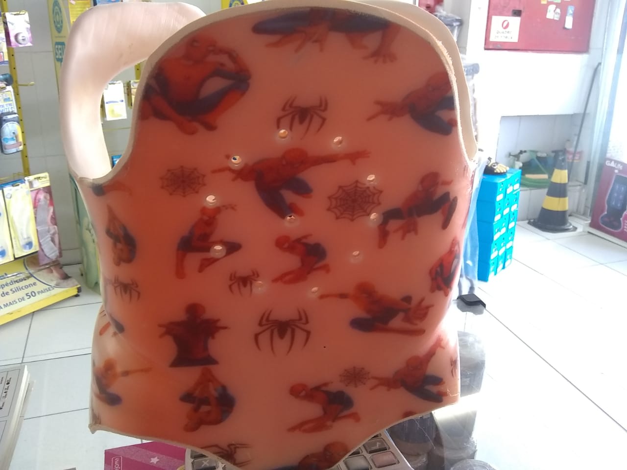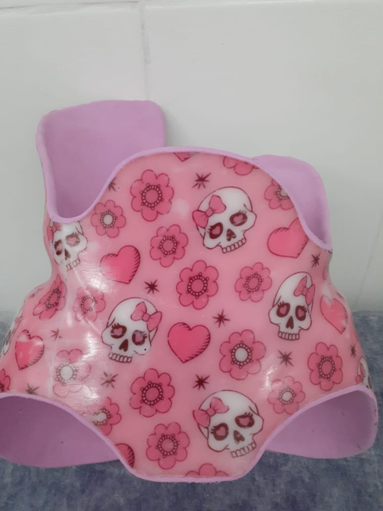 Tratamento de escolioses, feito sob modelo de gesso. Material: Polipropileno, E.V.A. (Borracha) e Velcros.